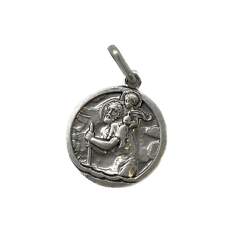 Toujours représenté comme un géant portant l’Enfant Jésus sur ses épaules, tenant un bâton ou une palme. Un jour, il aidait les voyageurs à traverser une rivière dangereuse. Un enfant lui demanda de le porter sur ses épaules. En traversant, Christophe sentit l’enfant devenir incroyablement lourd, comme s’il portait le monde entier. L’enfant lui révéla alors : « Je suis le Christ, et tu as porté le Sauveur du monde. »La médaille est un signe de foi et de confiance.