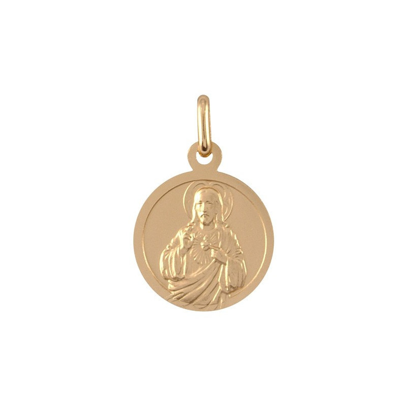 Médaille en plaqué or (NF : 3 microns) du Sacré Coeur de Jésus au recto, et de Notre Dame du Mont Carmel au verso.Son diamètre de 18 mm, fait de cette médaille, un superbe bijoux, cadeau idéal pour une communion ou un baptême.
