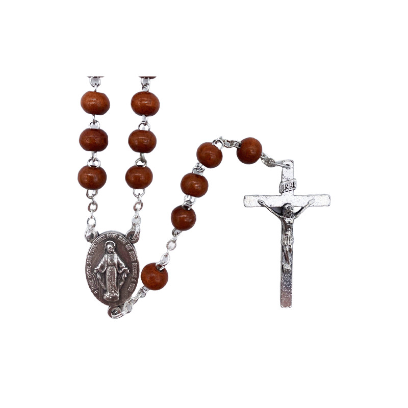Chapelet de Communion en Bois avec Chaîne Argentée