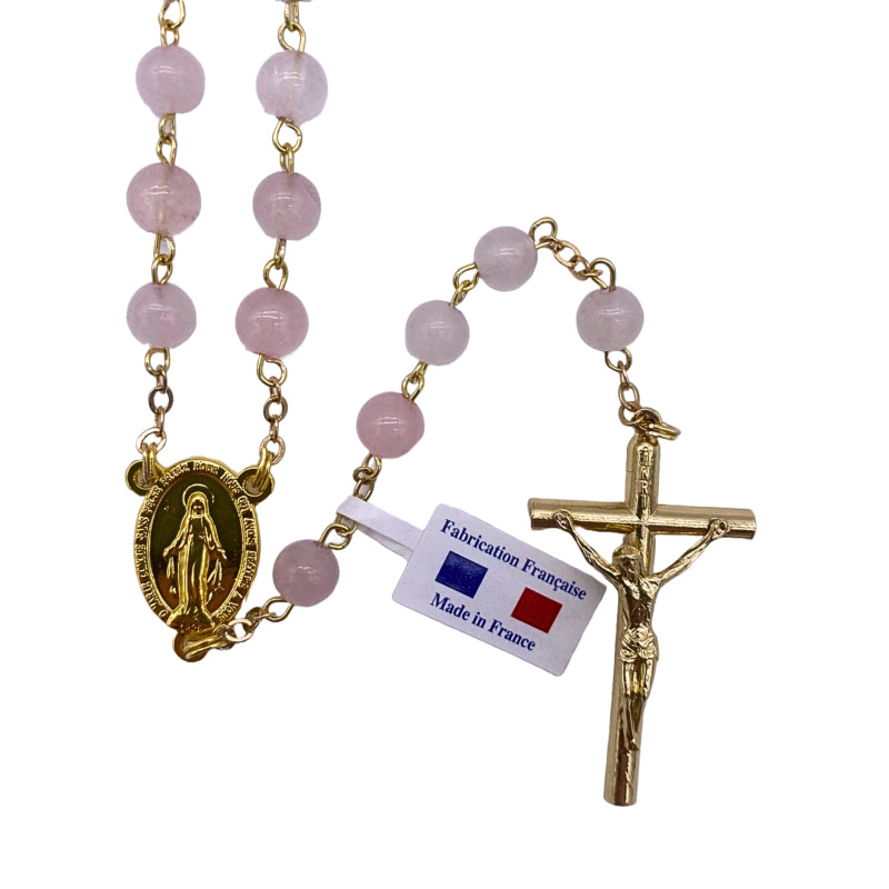 Chapelet en Quartz Rose sur Chaîne Dorée